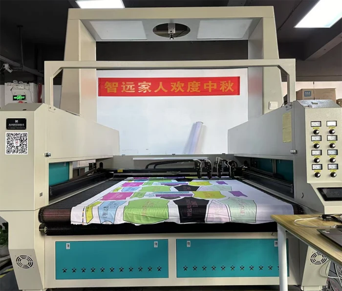 1) థర్మల్ సబ్లిమేషన్ స్పోర్ట్స్వేర్: థర్మల్ సబ్లిమేషన్ స్పోర్ట్స్వేర్ యొక్క ప్రాసెసింగ్ కోసం, పనోరమిక్ విజన్ లేజర్ కట్టింగ్ మెషీన్ వివిధ స్పోర్ట్స్ ఎలిమెంట్స్, బ్రాండ్ లోగోలు మరియు ఇతర నమూనాలతో ముద్రించిన బట్టలను ఖచ్చితంగా కత్తిరించగలదు. అదే సమయంలో, వేర్వేరు పరిమాణాలు మరియు క్రీడా దుస్తుల యొక్క విభిన్న శైలుల యొక్క చిన్న బ్యాచ్ అనుకూలీకరణ అవసరాల నేపథ్యంలో, ఇది గ్రాఫిక్స్ యొక్క నిజ-సమయ సవరణ మరియు వివిధ ప్రాసెసింగ్ ఫార్మాట్ల యొక్క ప్రయోజనాలకు మద్దతు ఇవ్వడం ద్వారా కట్టింగ్ పథకాన్ని త్వరగా సర్దుబాటు చేస్తుంది, తద్వారా వ్యక్తిగతీకరించిన అనుకూలీకరణ యొక్క అవసరాలను తీర్చడానికి మరియు స్పోర్ట్వేర్ యొక్క మొత్తం అందం మరియు వృత్తి నైపుణ్యాన్ని మెరుగుపరచడానికి.